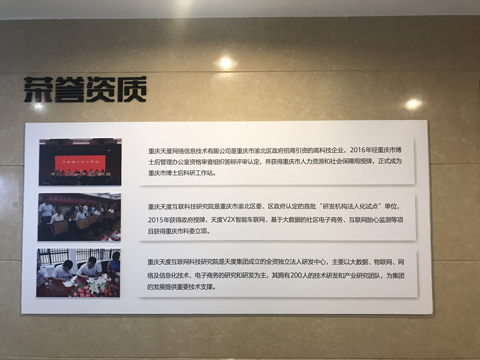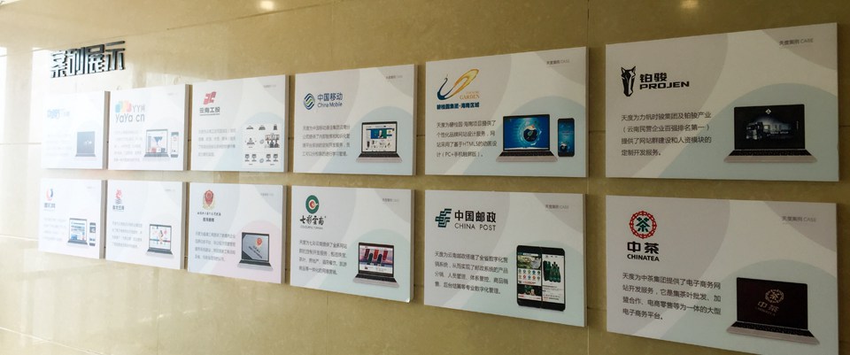 集團(tuán)概況的文化墻對面就是咱們天度更詳細(xì)的“集團(tuán)架構(gòu)”,分別羅列出了重慶、昆明、成都三個總部的子公司,讓客戶對天度集團(tuán)名下的子公司有更深入的認(rèn)識,也從正面證明了天度12年積累下來的傲人的成果。