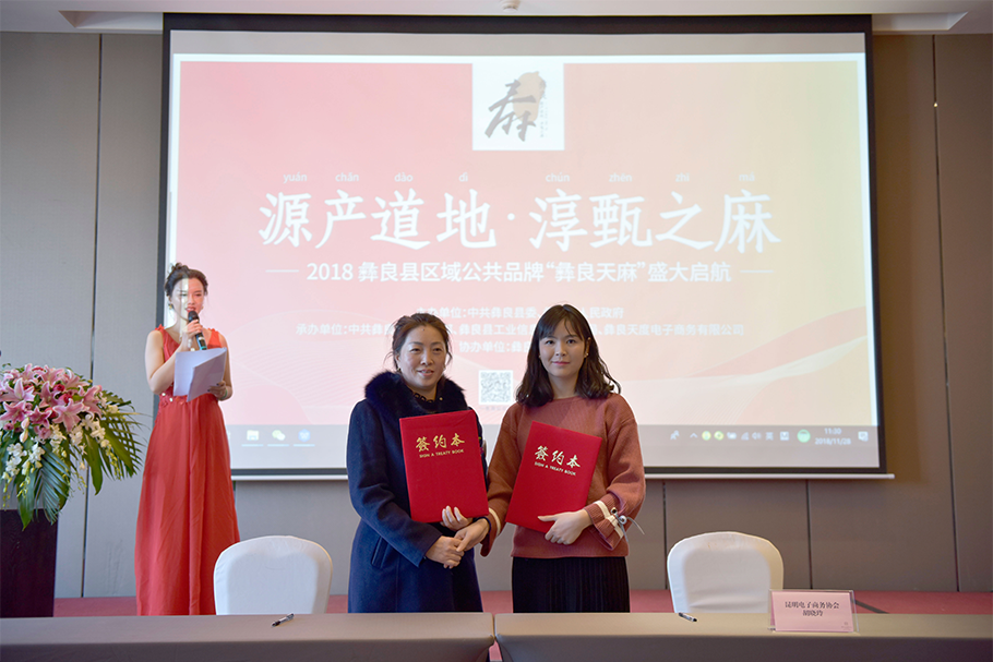 彝良谷生天麻種植有限公司尹芹與昆明電子商務(wù)協(xié)會(huì)胡曉玲秘書長(zhǎng)簽署戰(zhàn)略合作協(xié)議