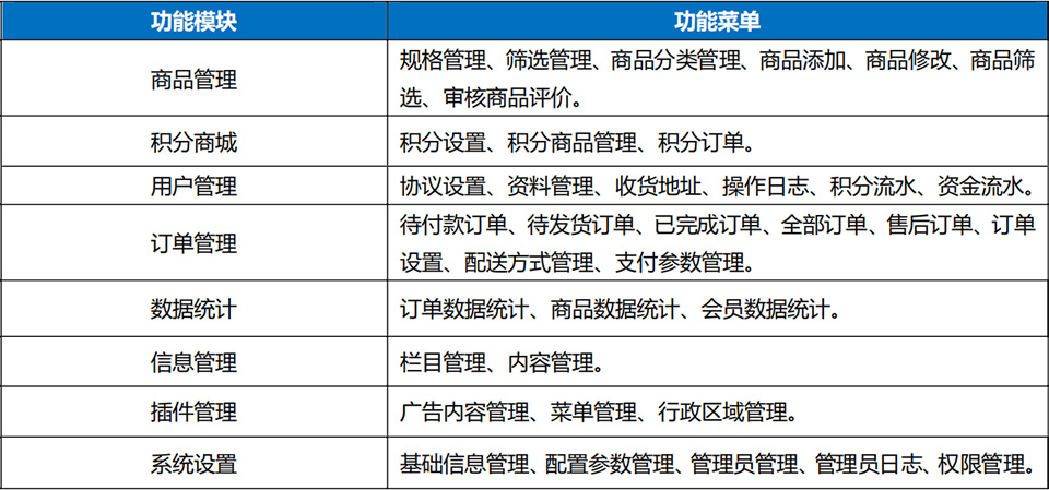小帥云店-電商小程序功能列表: