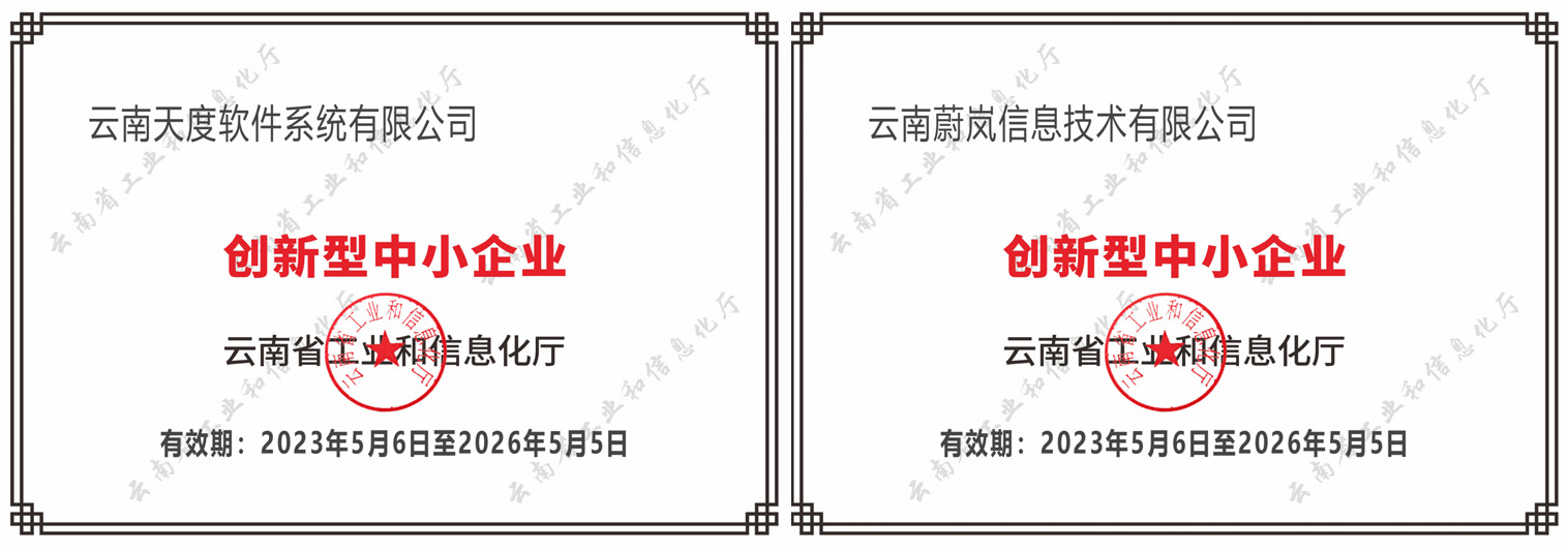 天度軟件入選云南省專(zhuān)精特新中小企業(yè)、創(chuàng)新型中小企業(yè)、國(guó)家科技型中小企業(yè)名單