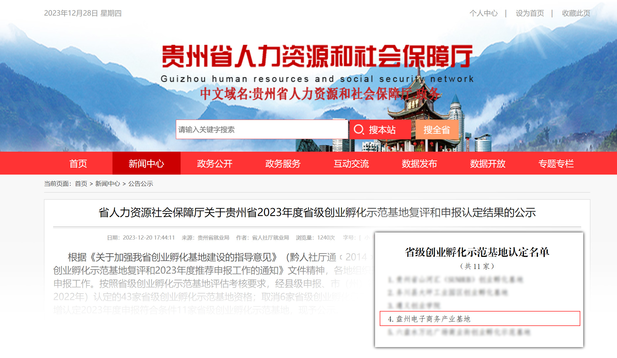 根據(jù)《關(guān)于加強(qiáng)我省創(chuàng)業(yè)孵化基地建設(shè)的指導(dǎo)意見》(黔人社廳通﹝2014﹞250號)和《省人力資源社會保障廳關(guān)于開展省級創(chuàng)業(yè)孵化示范基地復(fù)評和2023年度推薦申報工作的通知》文件有關(guān)規(guī)定,經(jīng)基地申報,縣級申報、市(州)初審、省級評估等程序,天度集團(tuán)盤州蔚嵐電子商務(wù)有限公司建設(shè)運營的“盤州電子商務(wù)產(chǎn)業(yè)基地”獲得貴州省人力資源和社會保障廳“省級創(chuàng)業(yè)孵化示范基地”認(rèn)定。